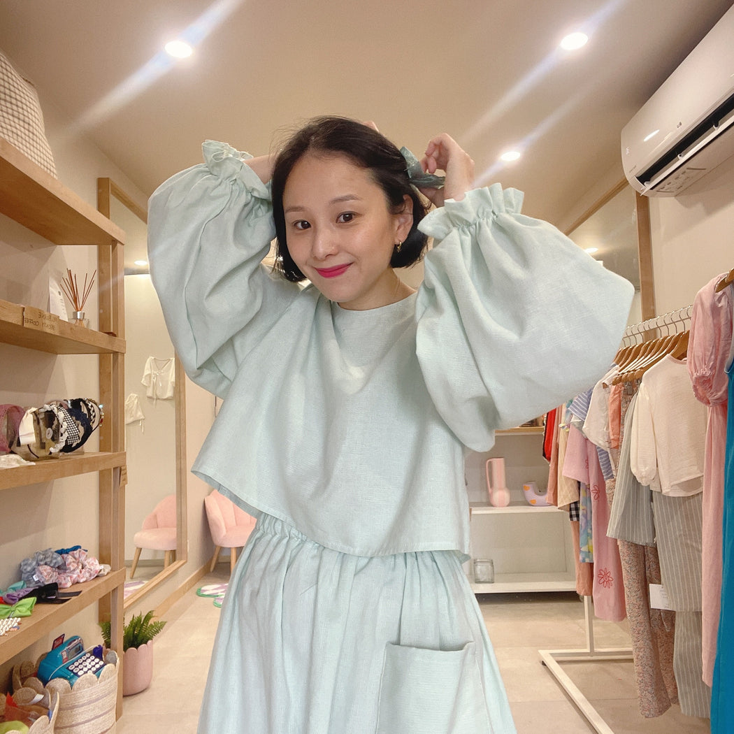 This cotton/linen blend crop blouse is super soft and cute. Match with the matching skirt and you will be noticed everywhere🙂